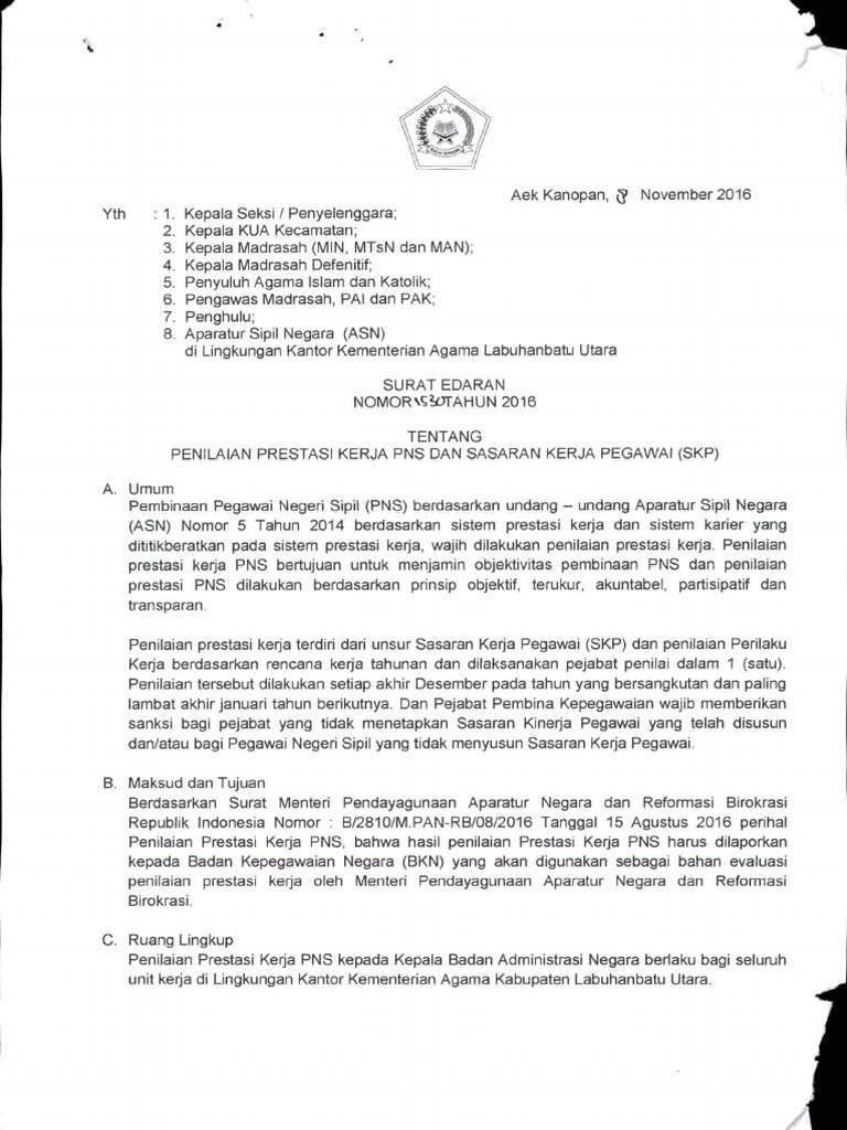 Surat Edaran Penilaian Prestasi Kinerja Pdf